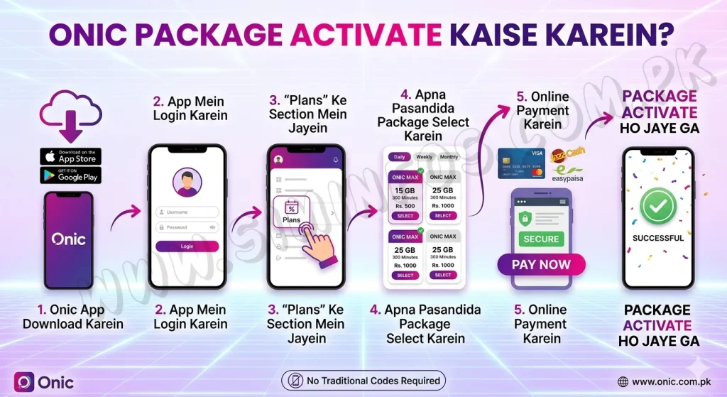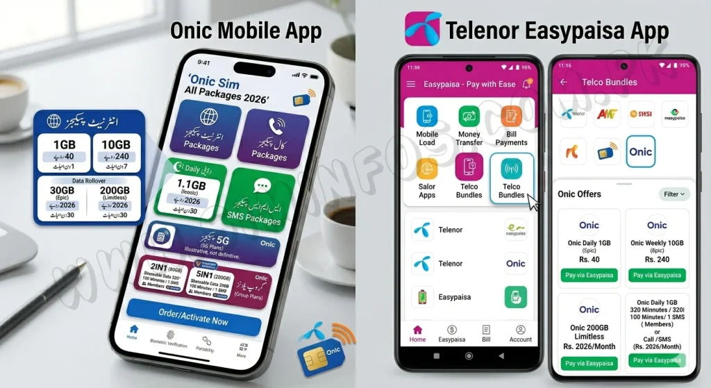 Zaroori Baat: Onic ke zyada tar packages Onic Mobile App ya Telenor Easypaisa App sy activate Kar sakty hain Is mein USSD codes (jaise *123567#) ka istemal Bhut kam hota hai. Q k Ye Digital Network hain.